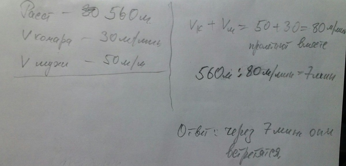 От рябины до березы 560м.с этих деревьев одновременно навстречу друг-другу вылетели комар и муха скороть комора 30м.мин а скорость мухи 50м.мин через сколько минут они встретятся