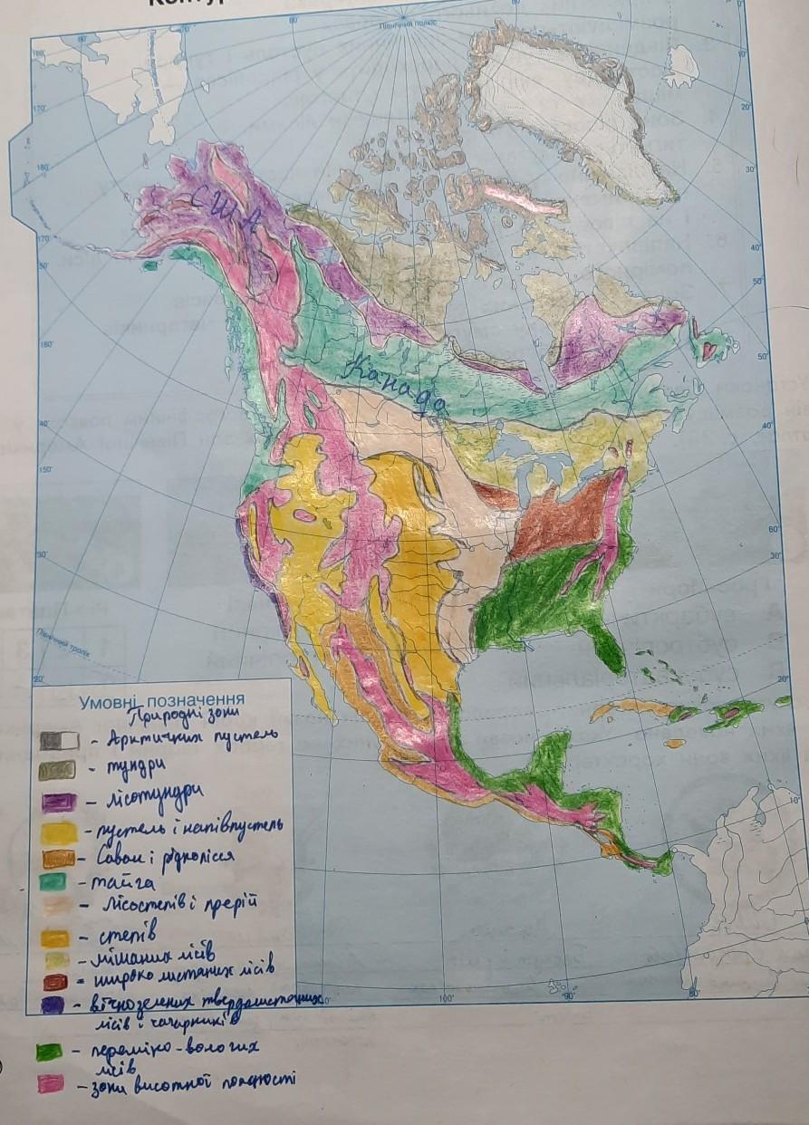 4. Познач на контурній карті Північної Америки межі природних зон арктичних