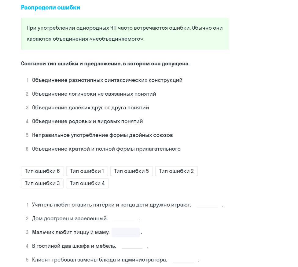 предложение 1- тип ошибки 1