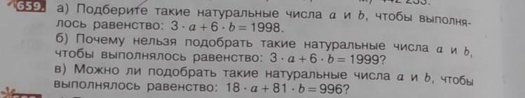 б) Потому что сумма 3 ∙ а + 6 ∙ b делится на 3, а число 1999 нет.