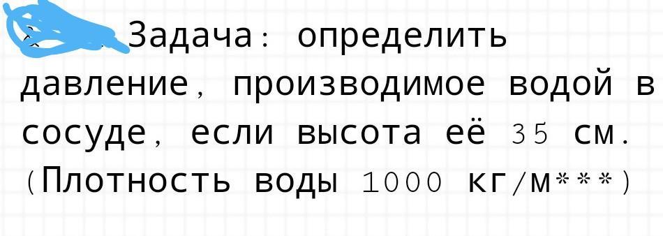 p=1000кг/м³×10Н/кг×0,35м=3500Па