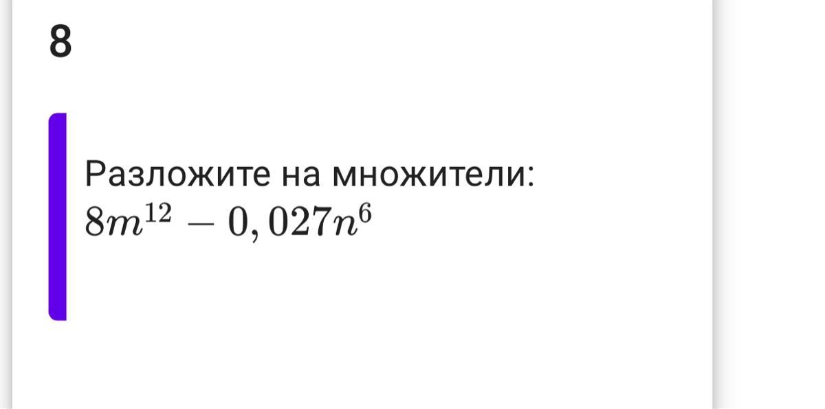 8m¹² - 0.027n⁶ = (2m⁴ - 0.3n²)(4m⁸ + 0.6m⁴n² + 0.09n⁴)