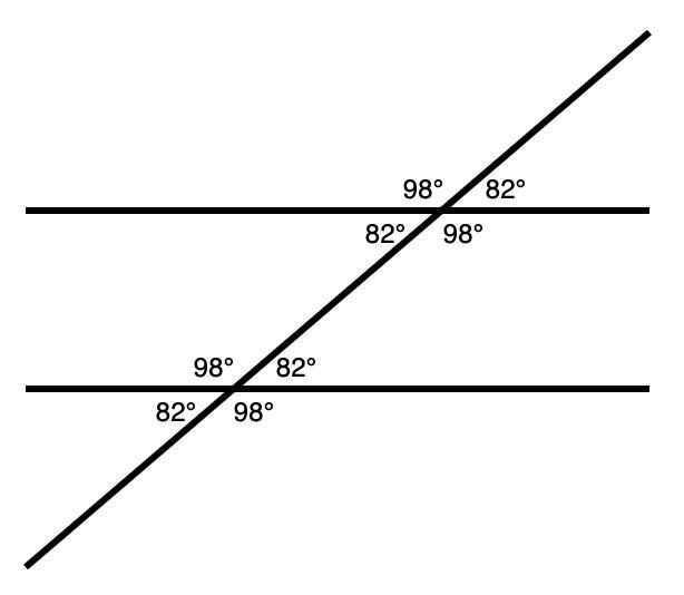 180° – 82° = 98°