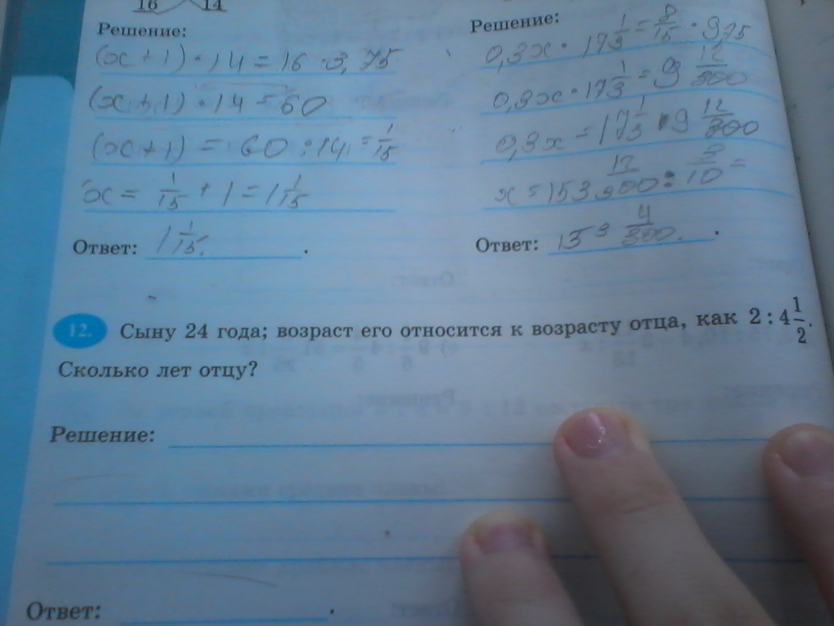 возраст сына относится к возрасту отца, как 2:4,524/2 = 12 (одна часть)12 * 4,5 = 54 ответ: 54 лет отцу.