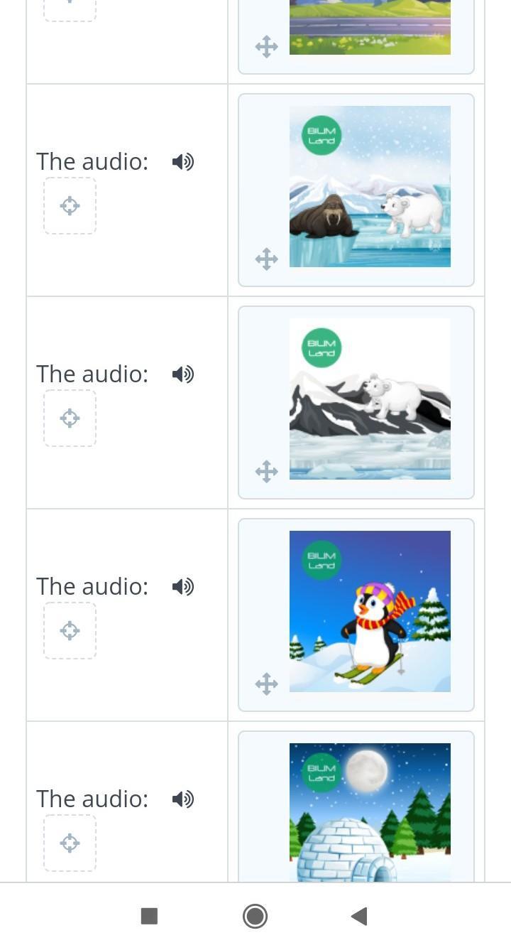 Расставить в следующем порядке: 1 картинка вид на весенние горы, 2 тюлень с белым медведем, 3 пингвин, 4 ледяной дом, 5 белый медведь в горах