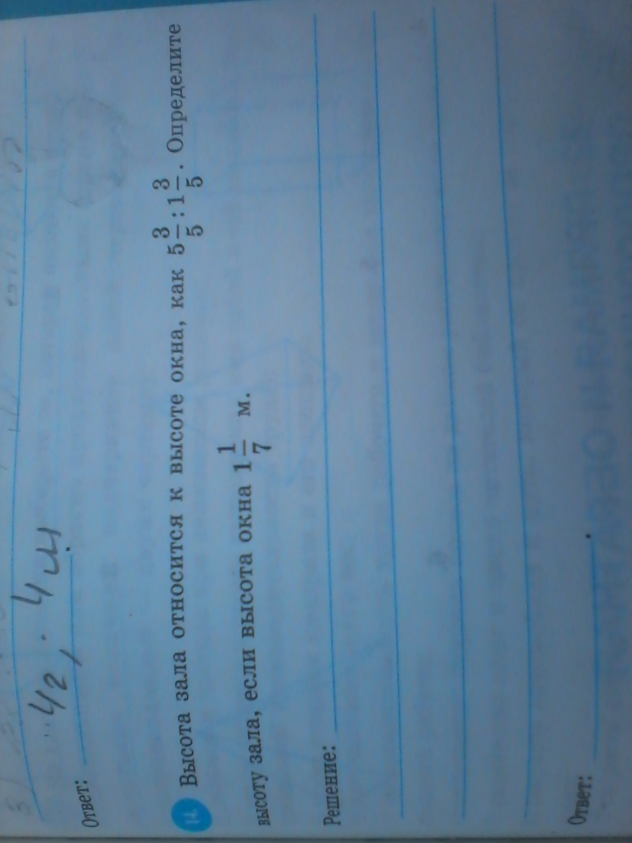 высота зала относится к высоте окна,как 5 3_5:1 3_5.Опредилите высоту зала ,если высота окна 1 1_7 метров