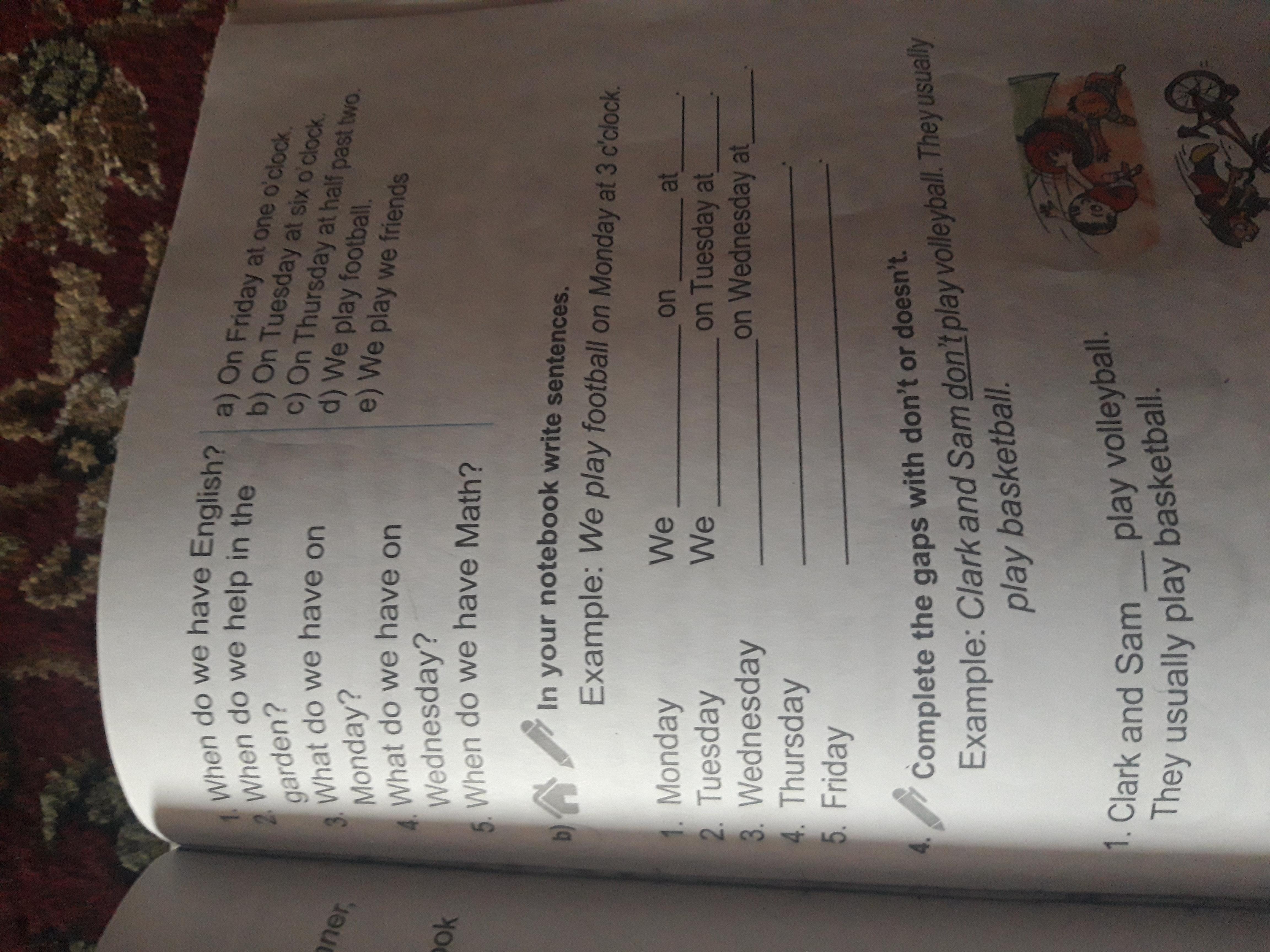 1.We swim in the swimming pool on Monday at 4 o'clock.