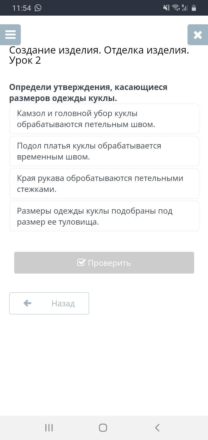 Урок 2 Определи утверждения касающиеся размеров одежды куклы Худ. Труд. девочки помогите