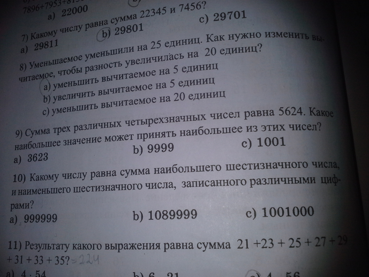 9)наименьшее четырехзначное число 1000, то если предположить что два из чисел это 1000, то в сумме они дадут 1000+1000=2000