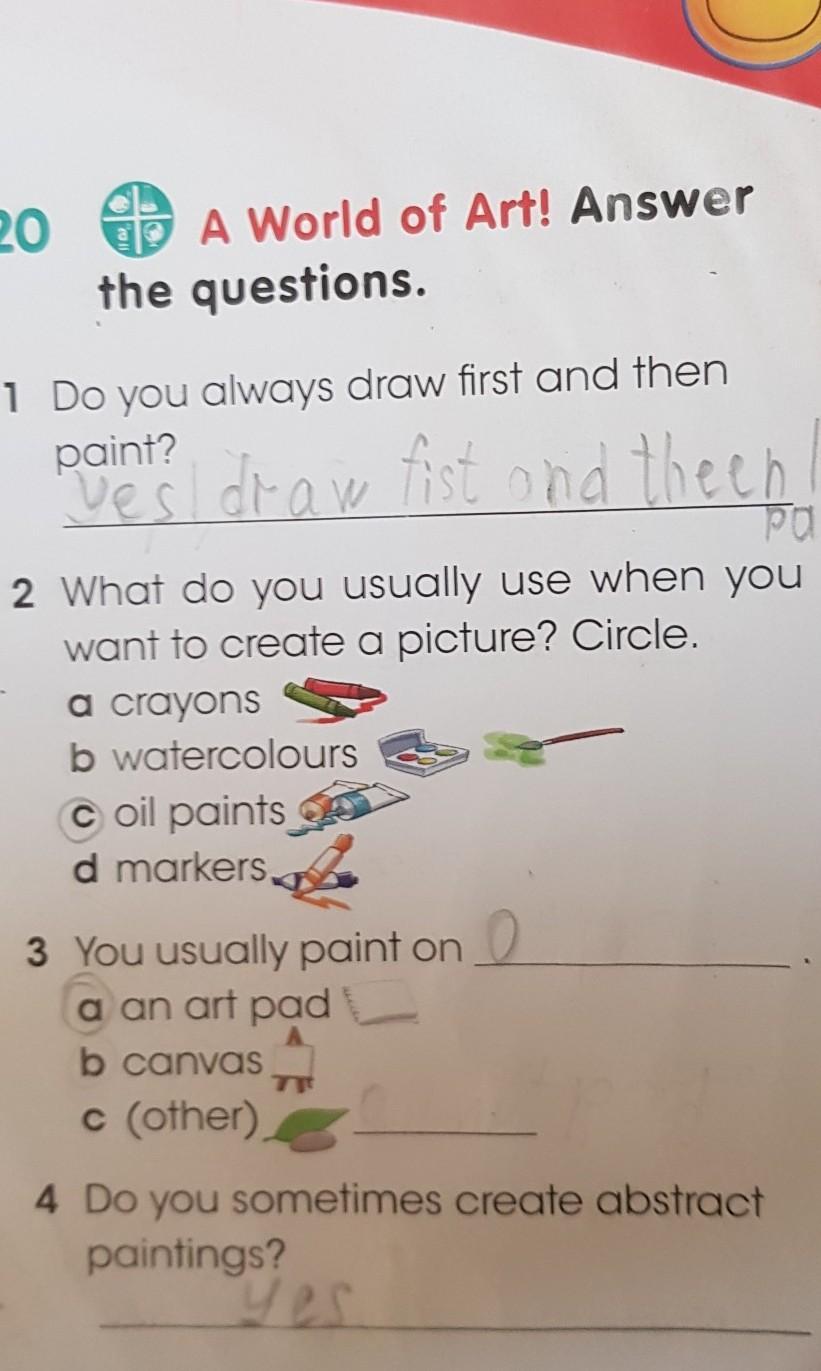 Получается 3 вопрос это: Ты обычно рисуешь на?