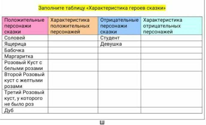 Ответ: соловей -положительный студент - отрицательный девушка - отрицательная бабочка- нейтрально ящерица - нейтрально маргаритка - нейтрально розовый куст с белыми розами- отрицательно? розовый куст с желтыми розам- положительно| нейтрально Третий розовый куст, у которого не было роз - нейтрально дуб - положительно Объяснение: