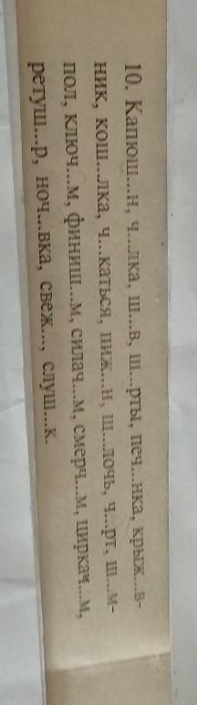10.Капюшон, чёлка, шов, шорты, печенка, крыжовник, кошелка, чокаться, пижон, щелочь, чёрт, шампол, ключём, финишем, силачем, смерчем, циркачом, ретушер, ночёвка, свежо, слушок