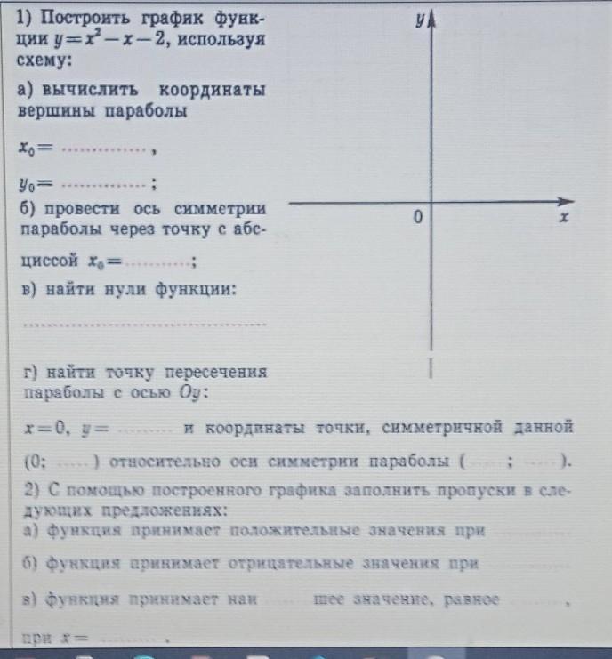 в) функция принимает наименьшее значение у = -2,25 при х = 0,5