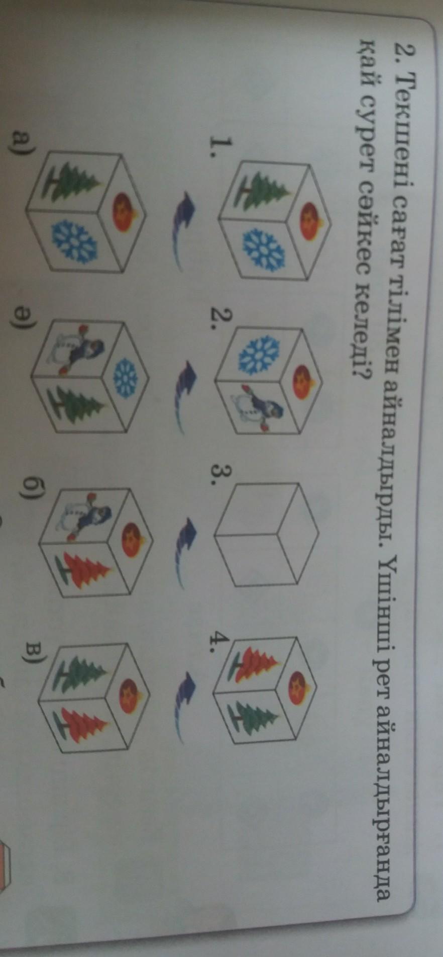 2.Текшені сағат тілімен айналдырды. Үшінші рет айналдырғанда қай сурет сәйкес келеді?