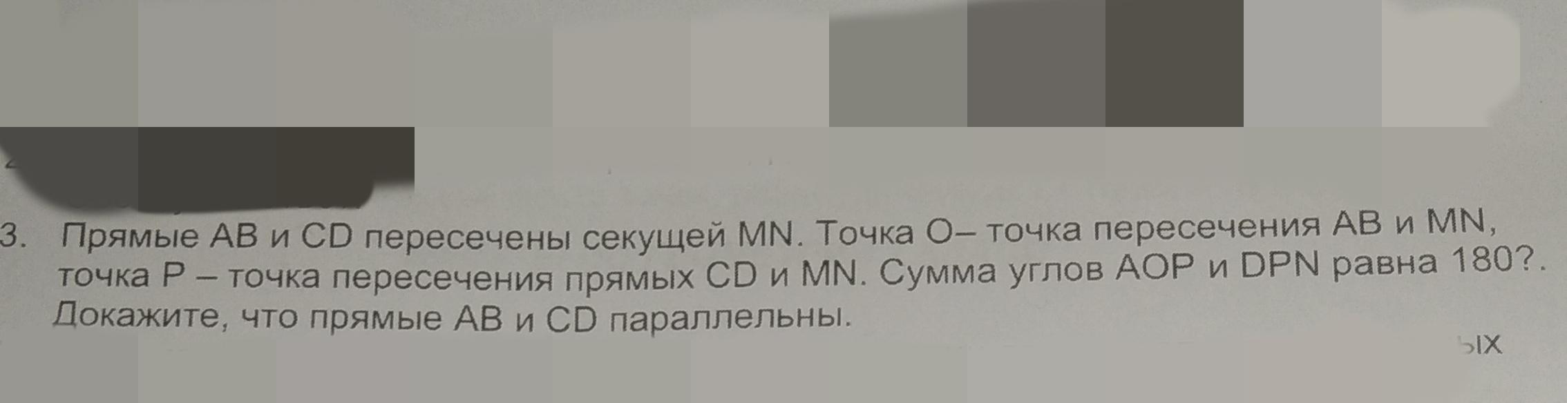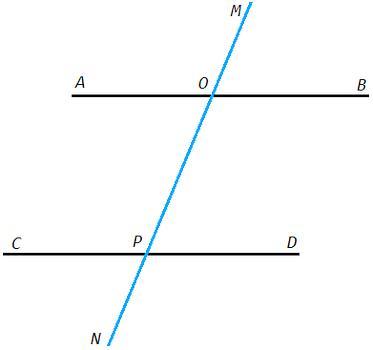 Прямые АВ и CD переселены секушей МN . Точка О -точка пересечения АВ и MN точка Р - точка пересечения прямых CD и MN . Сумма углов АОР и DPN равна 180?