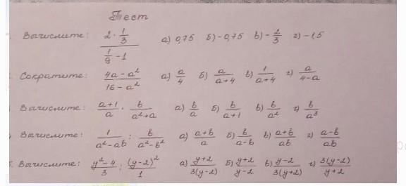 2) (4а-а²)/(16-а²) = a(4-a)/(4-a)(4+a)=a/(4+a); (ответ б) а/(4+а)).