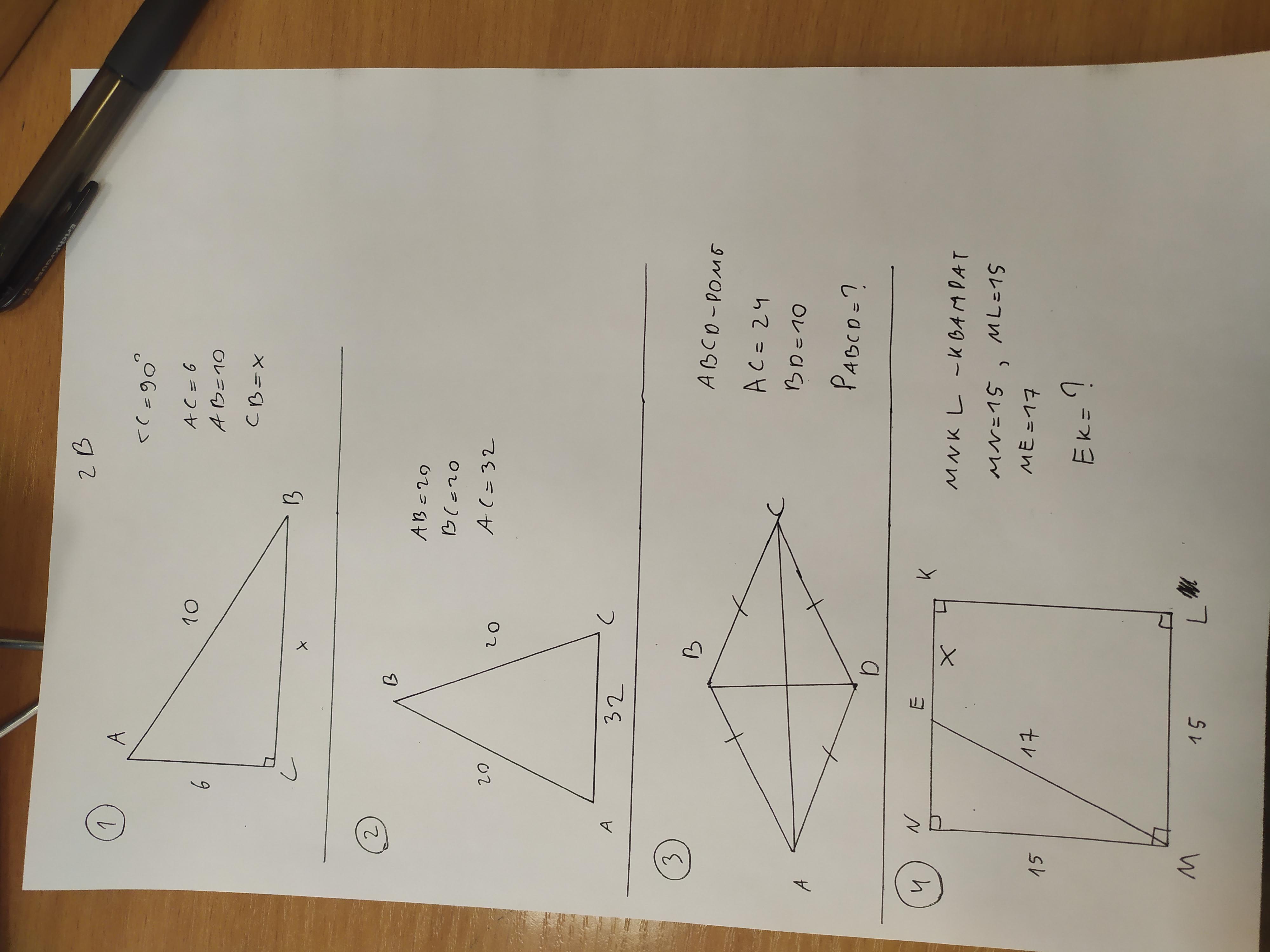 Точка О - пересечение диагоналей. Стороны ромба равны. Диагонали ромба в точке пересечения делатся пополам.