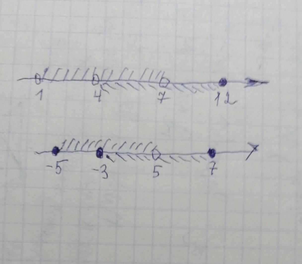 1) пересечение (4;7)