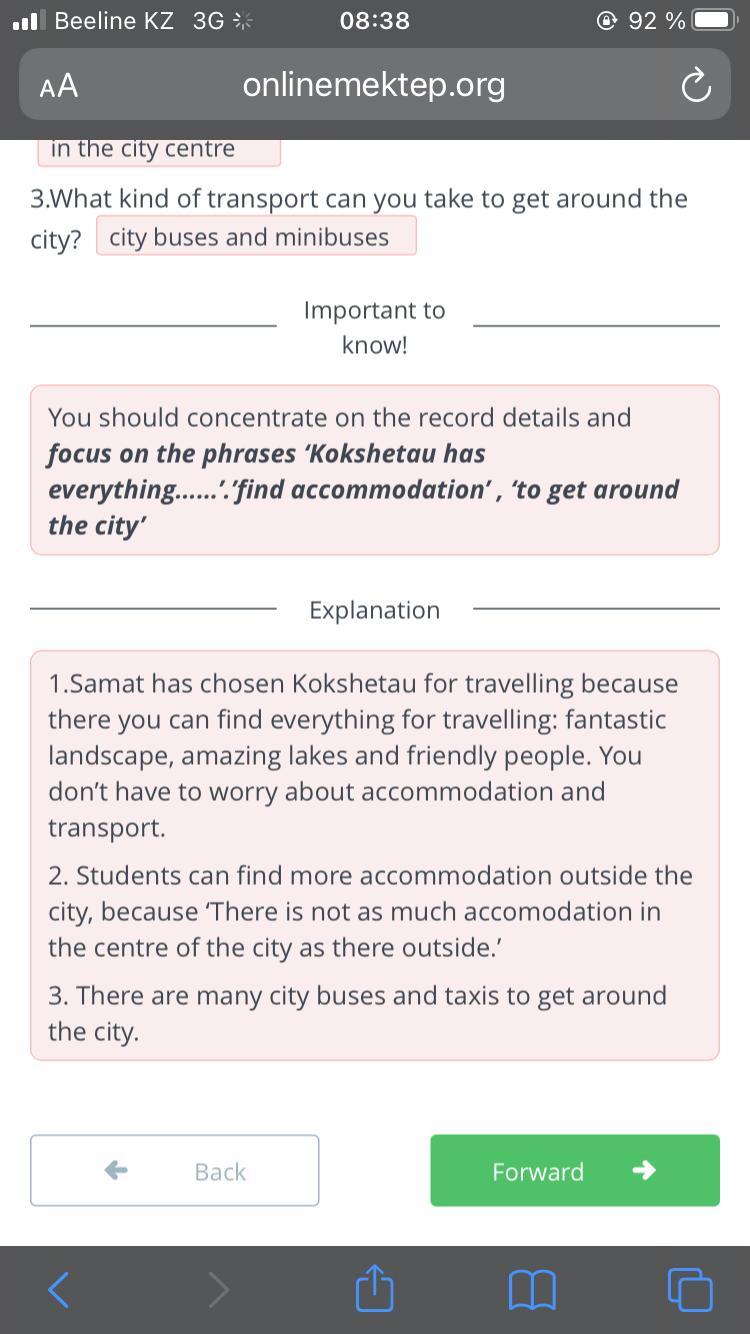 1.Why has Samat chosen Kokshetau for travelling? Kokshetau has………