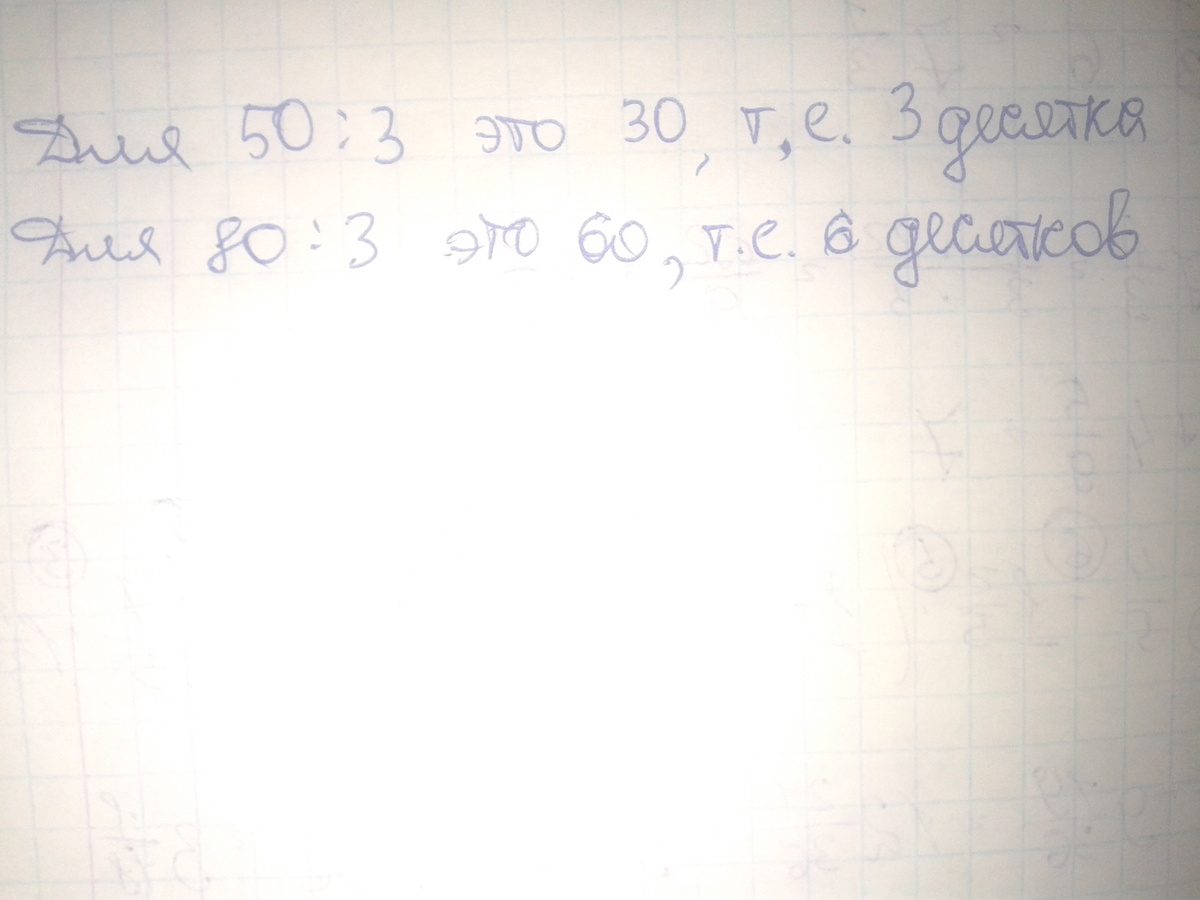 Для частных 50:3 и 80:3 определи и запиши наибольшее число десятков, которое делиться на 3 нацело.