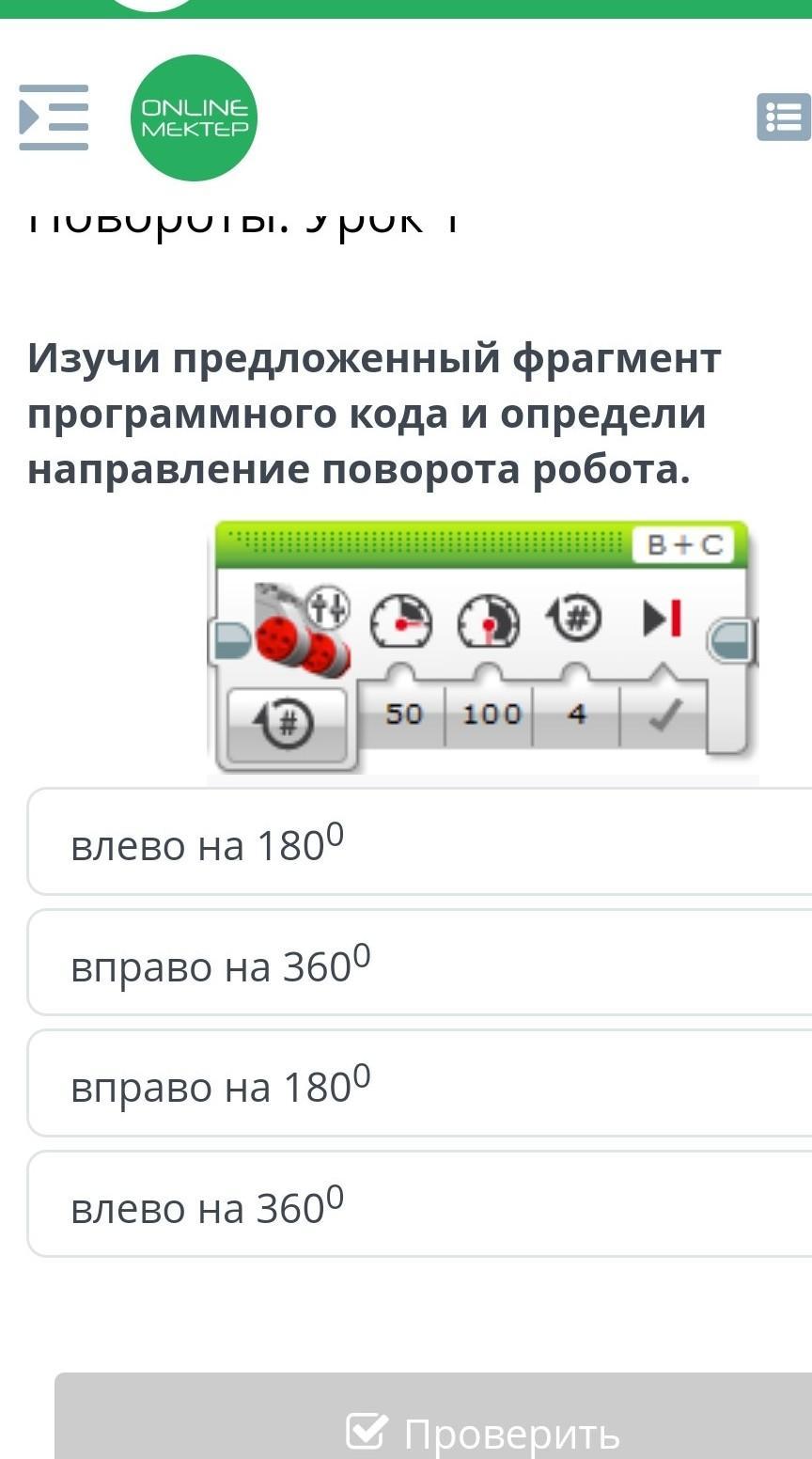 изучи предложенный фрагмент програмного кода и опредили направление поворота робота