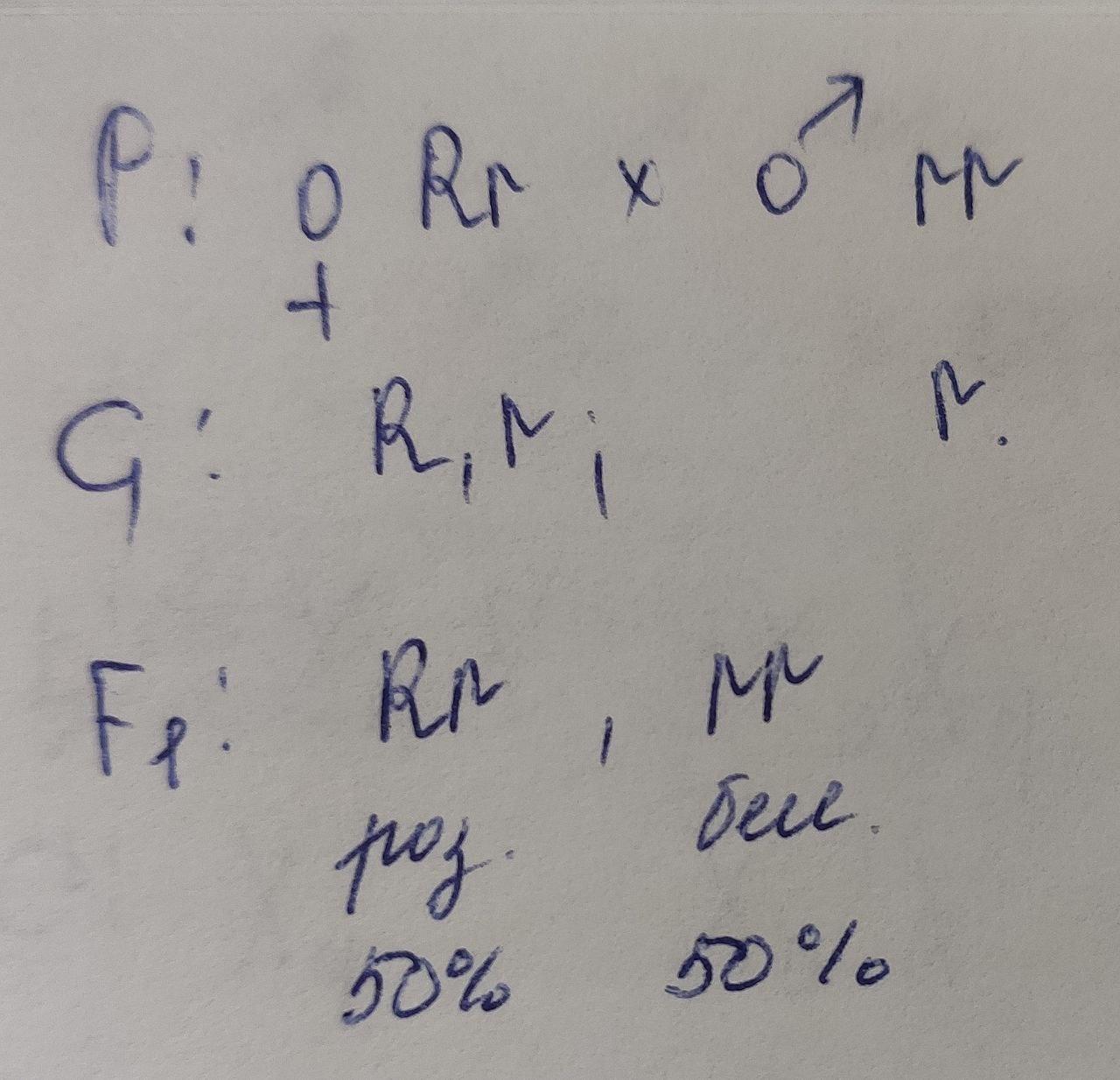 Если скрестить розовоплодные и белоплодные растения, то в потомстве будем наблюдать только розовоплодные (50%) с генотипом Rr, и белоплодные (50%) с генотипом rr.