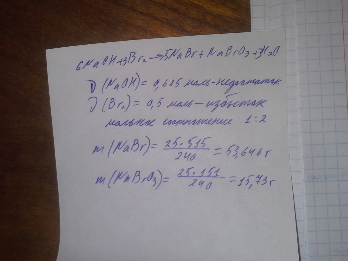 m (NaBrO)=m (NaOH)×Mr (NaBrO)÷2Mr (NaOH)=25×119÷80=37.1875 г.