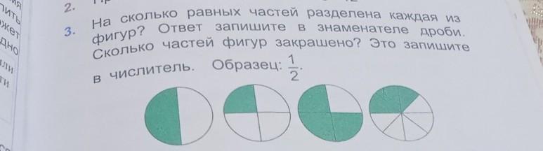 на Сколько равных частей разделен каждый из фигур ответ Ответ запишите знаменательным дроби части фигуры закрашено это ЗапишитеПомогите пожалуйста срочно