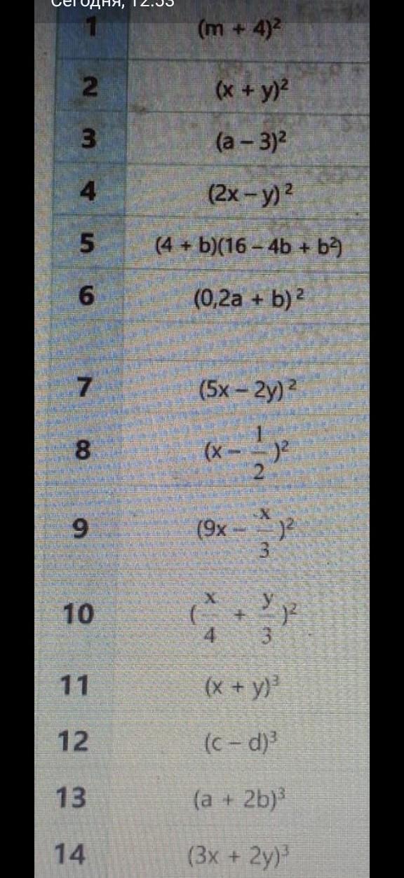 4)(2х-у)²=(2х)²-2×2х×у+у²=4х²-4ху+у²