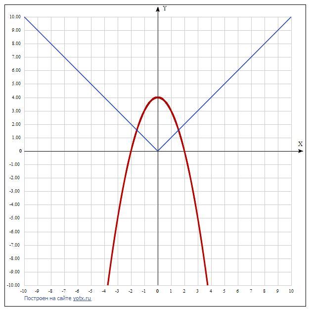 абсциси точок перетину- то і є розв'язок.≈±1,5