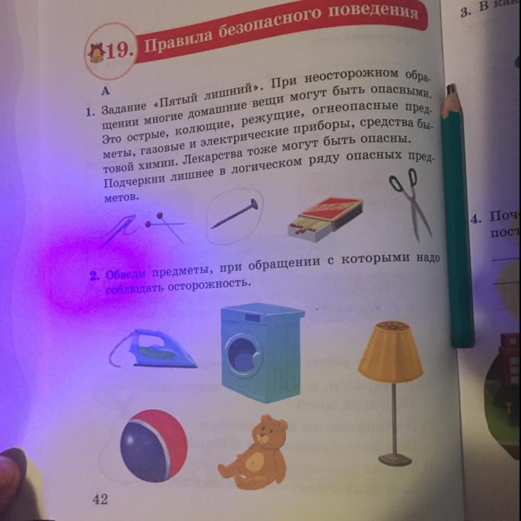 2. Обведи предметы, при обращении с которыми надо