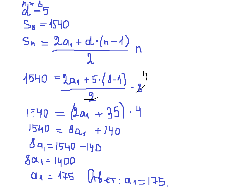 разность арифметической прогрессии равна 5.Сумма восьми первых членов равна 1540Найдите первый член этой прогрессии