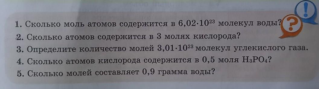 1. В воде H2O есть всего 3 атома - 2 атома водорода и 1 атом кислорода. Значит, в воде будет в 3 раза больше атомов, чем молекул. тогда умножаем данное кол-во молекул на 3