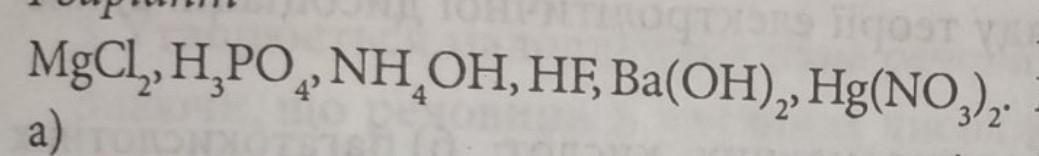6) Hg(NO₃)₂ ⇄ Hg²⁺ + 2NO₃⁻