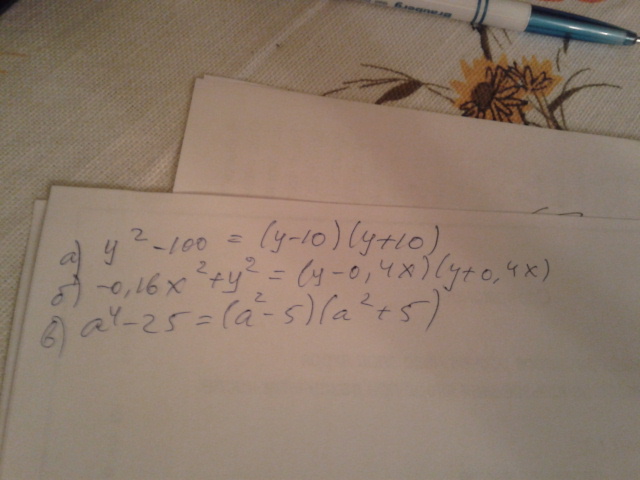 б) y² - 0,16x² = (y - 0,4x)*(y+0,4x)