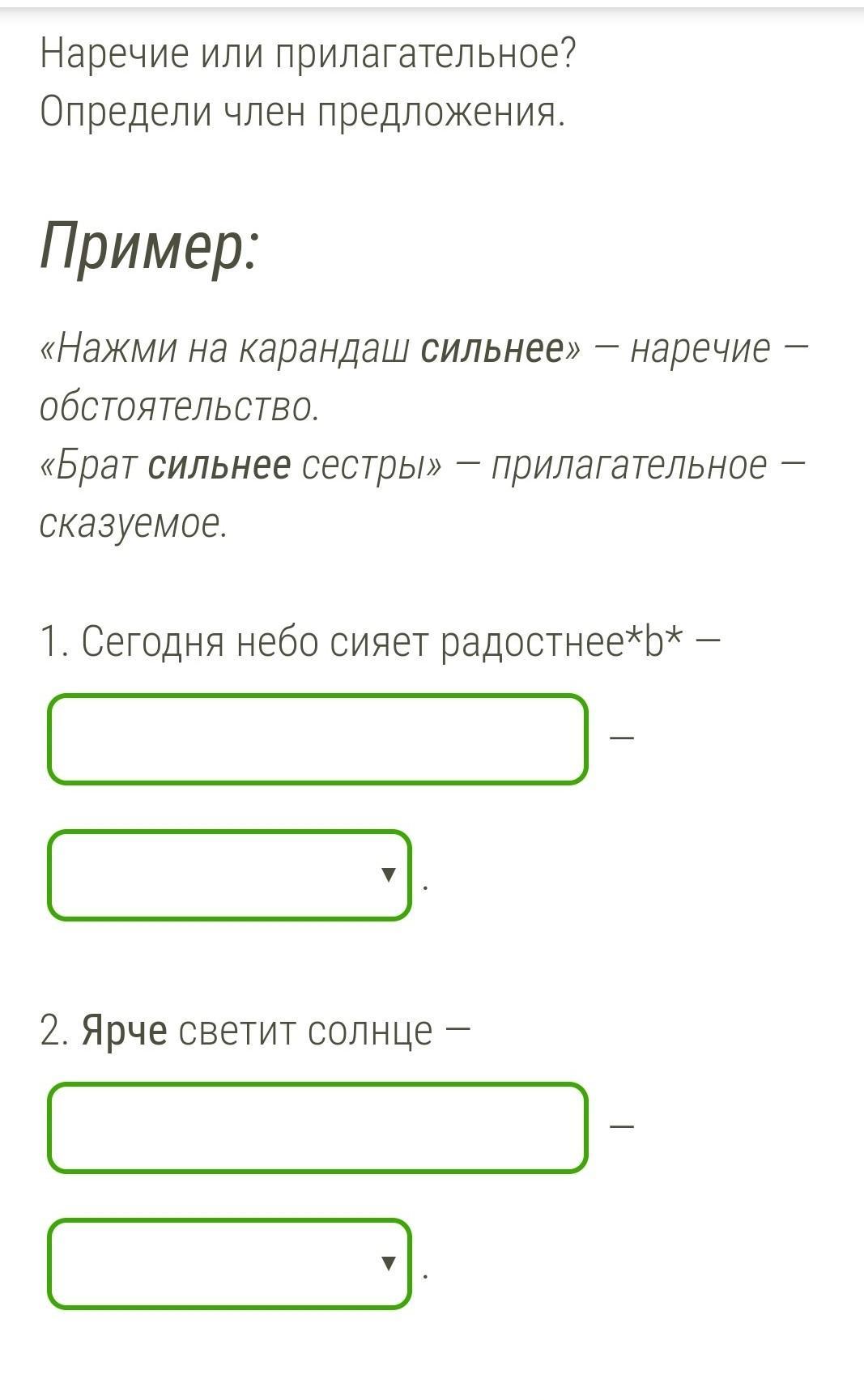 надо написать какая часть слова радостнее и чем является , например глагол выражено сказуемым. 1 и 2 надо делать