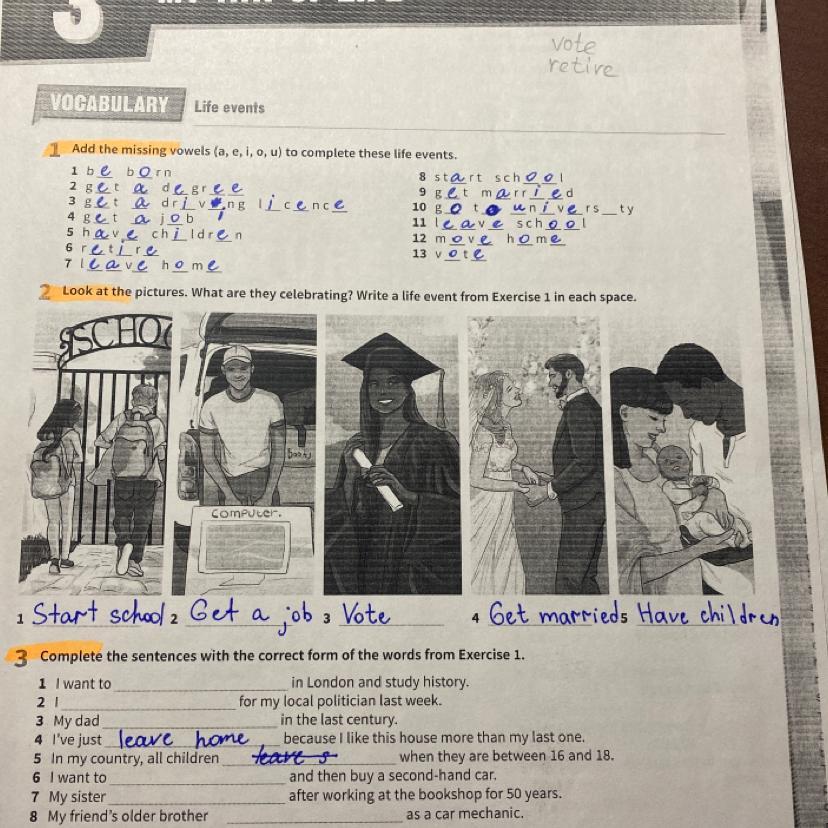 Ответ: 1.start school 2.voted 3.was born 4. Moved home 5.leave school 6.get a driving license 7.retired 8 got a job
