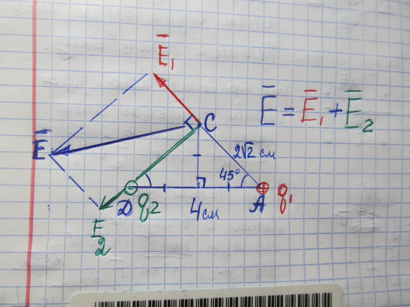 9/8 * 10⁹⁻⁹⁺⁴=9/8 * 10⁴ Н/Кл АС - диагональ квадрата со стороной 2 см