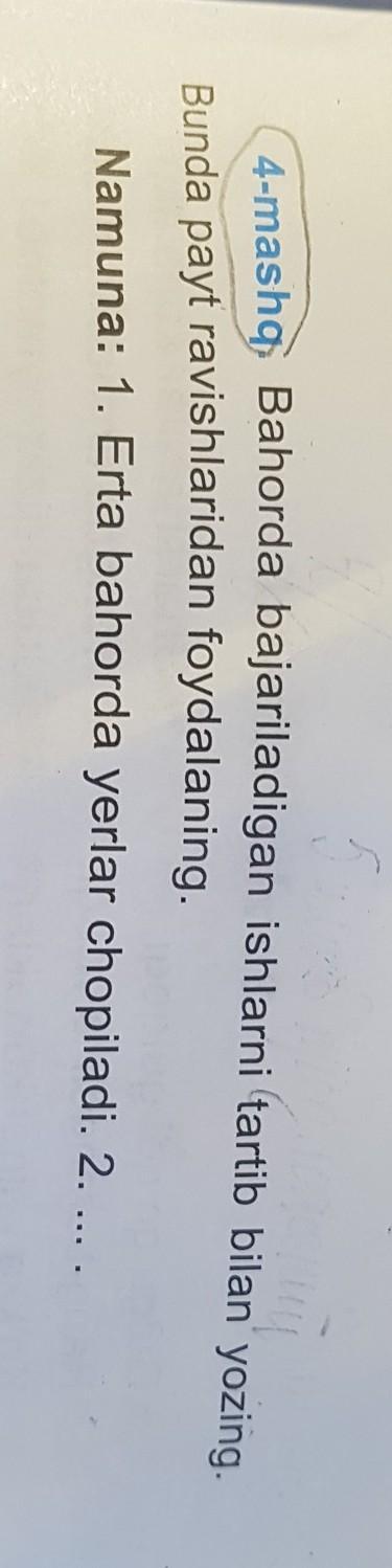 4-mashq, Bahorda bajariladigan ishlarni tartib bilan yozing.