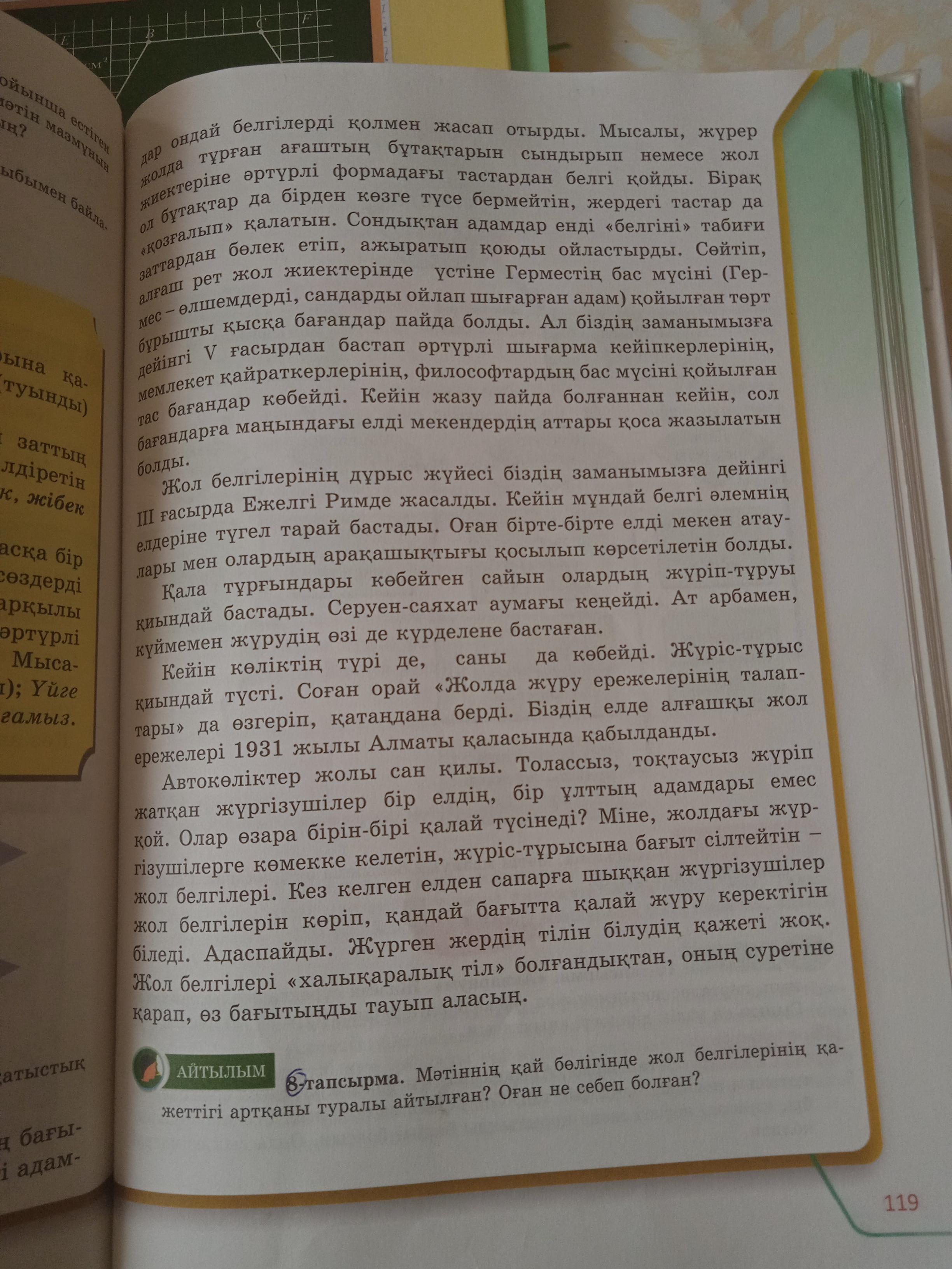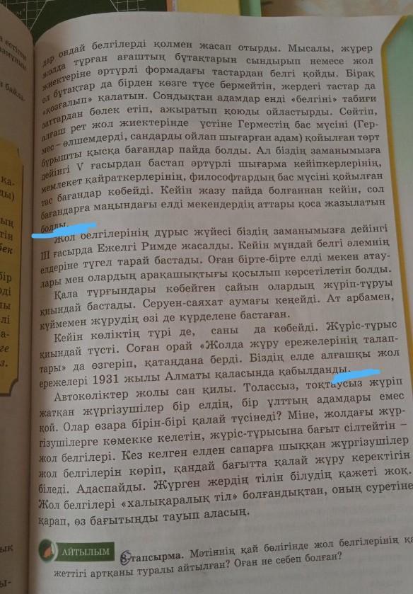 8-тапсырма. Мәтіннің қай бөлігінде жол белгілерінің қажеттігі артқаны туралы айтылған? Оған не себеп болған