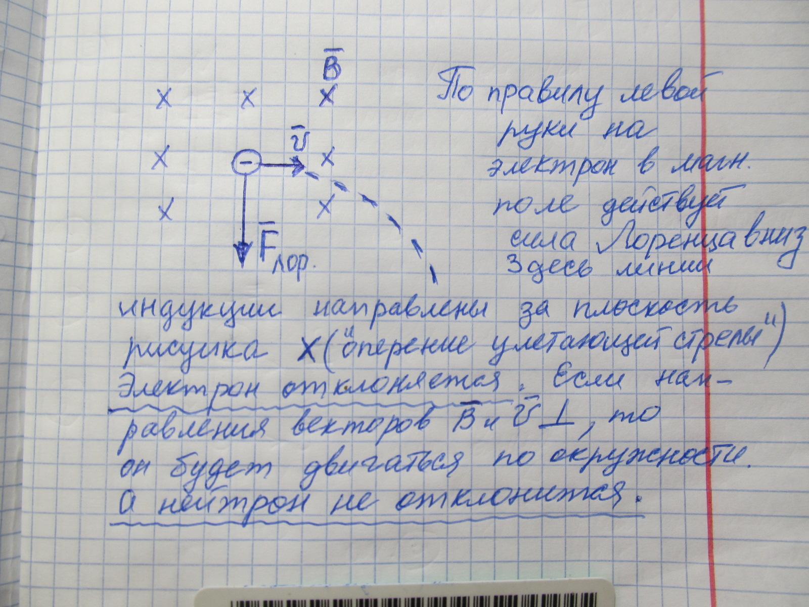 Если теперь определить направление вектора силы Лоренца в точке, когда он пролетит четверть окружности, то вектор скорости будет направлен уже вниз, а вектор силы Лоренца влево. Опять продолжится движение по дуге.