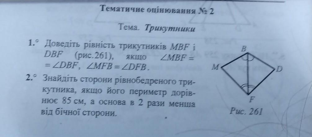1. BF общая сторона, значит тр-ки равны по 2му признаку