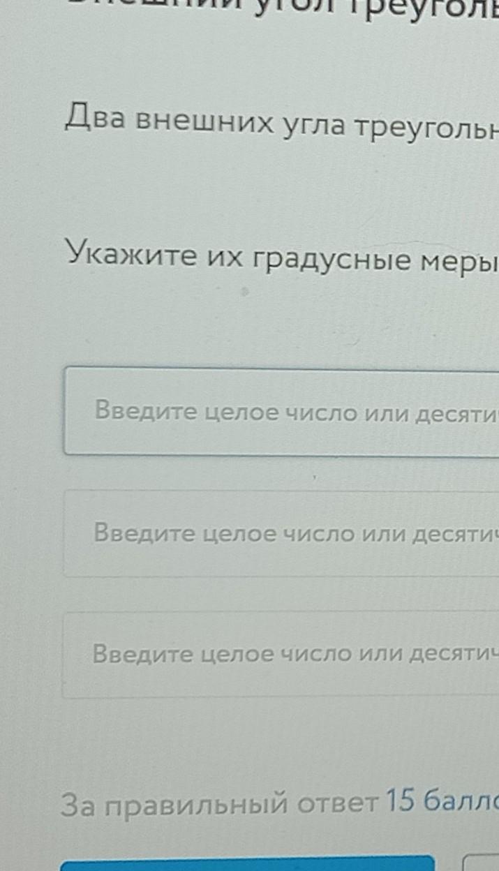 Внешний угол треугольника, со смежным ему внутренним углом этого треугольника, образуют развёрнутый угол(т.е 180°)
