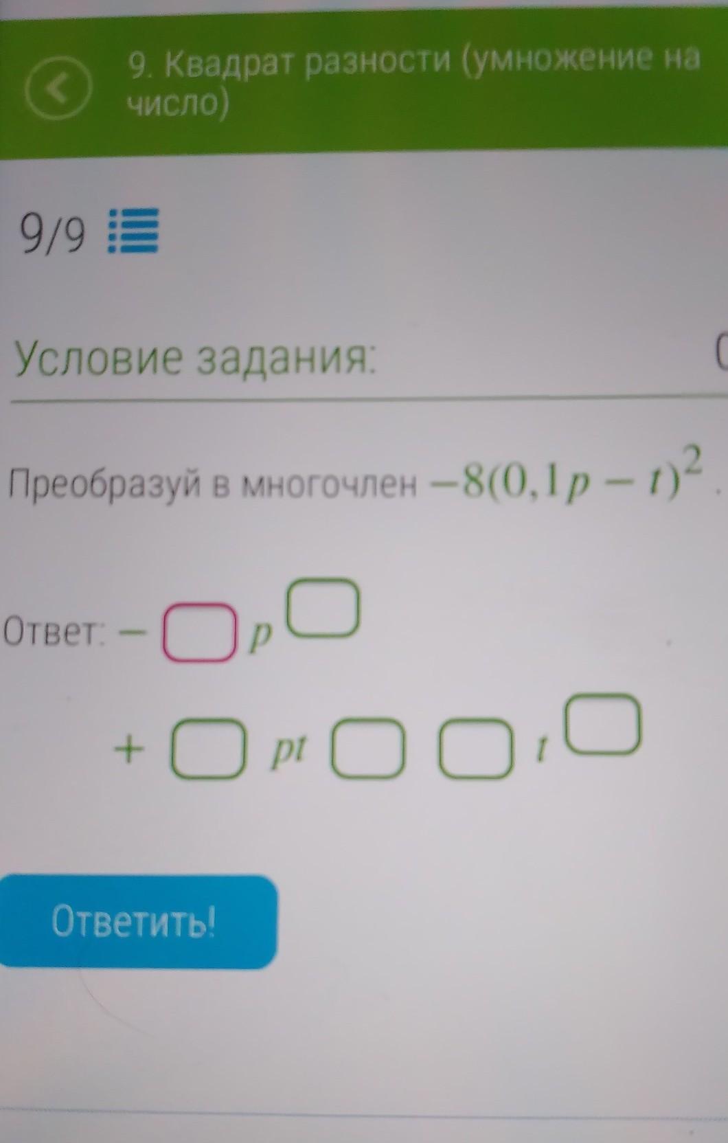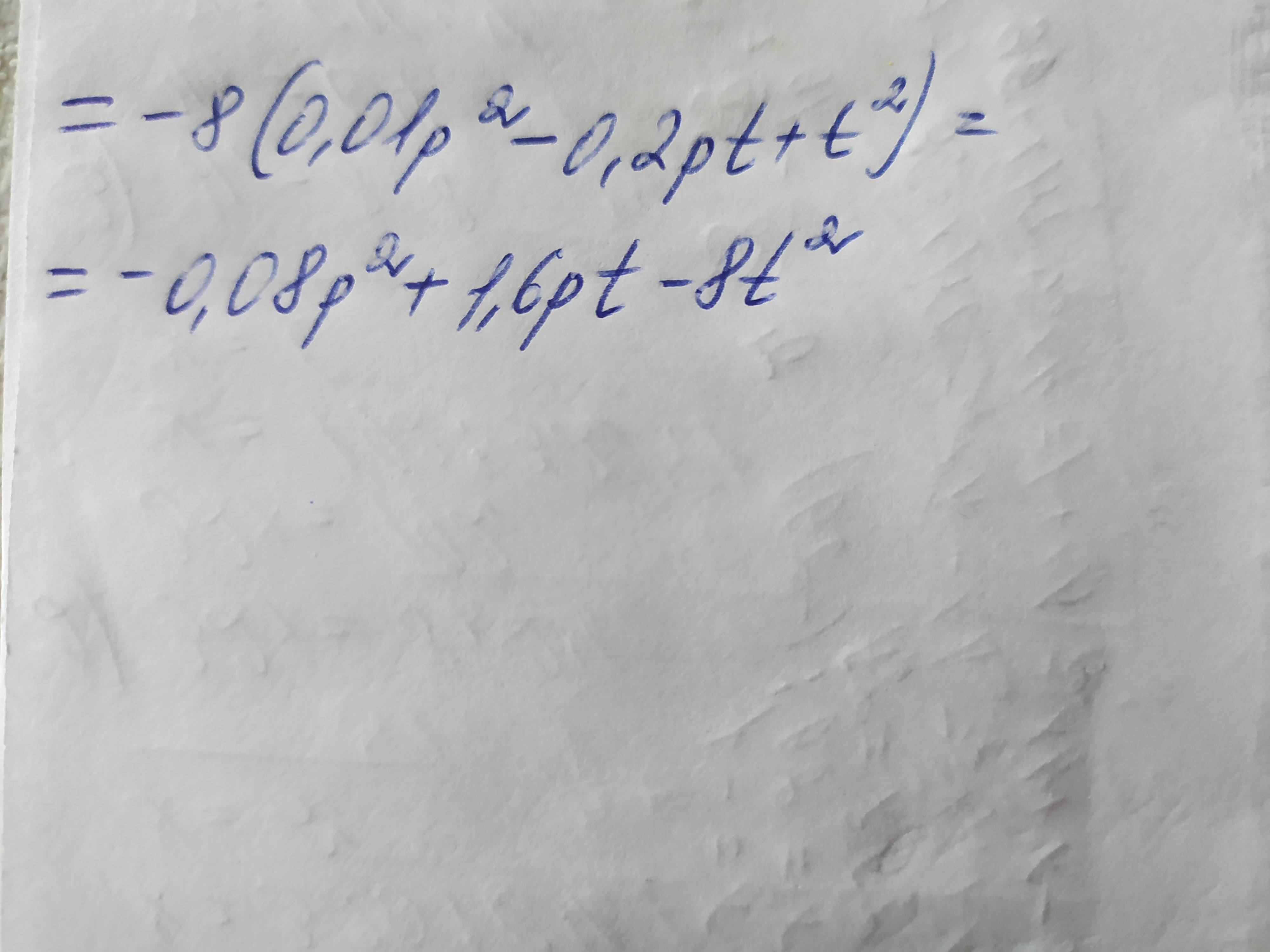 -0,08p2+1,6pt-8t2 вот привальное решение, если что после p стоит цифра 2 это в квадрате а так же и после буквы t тоже 2 в квадрате