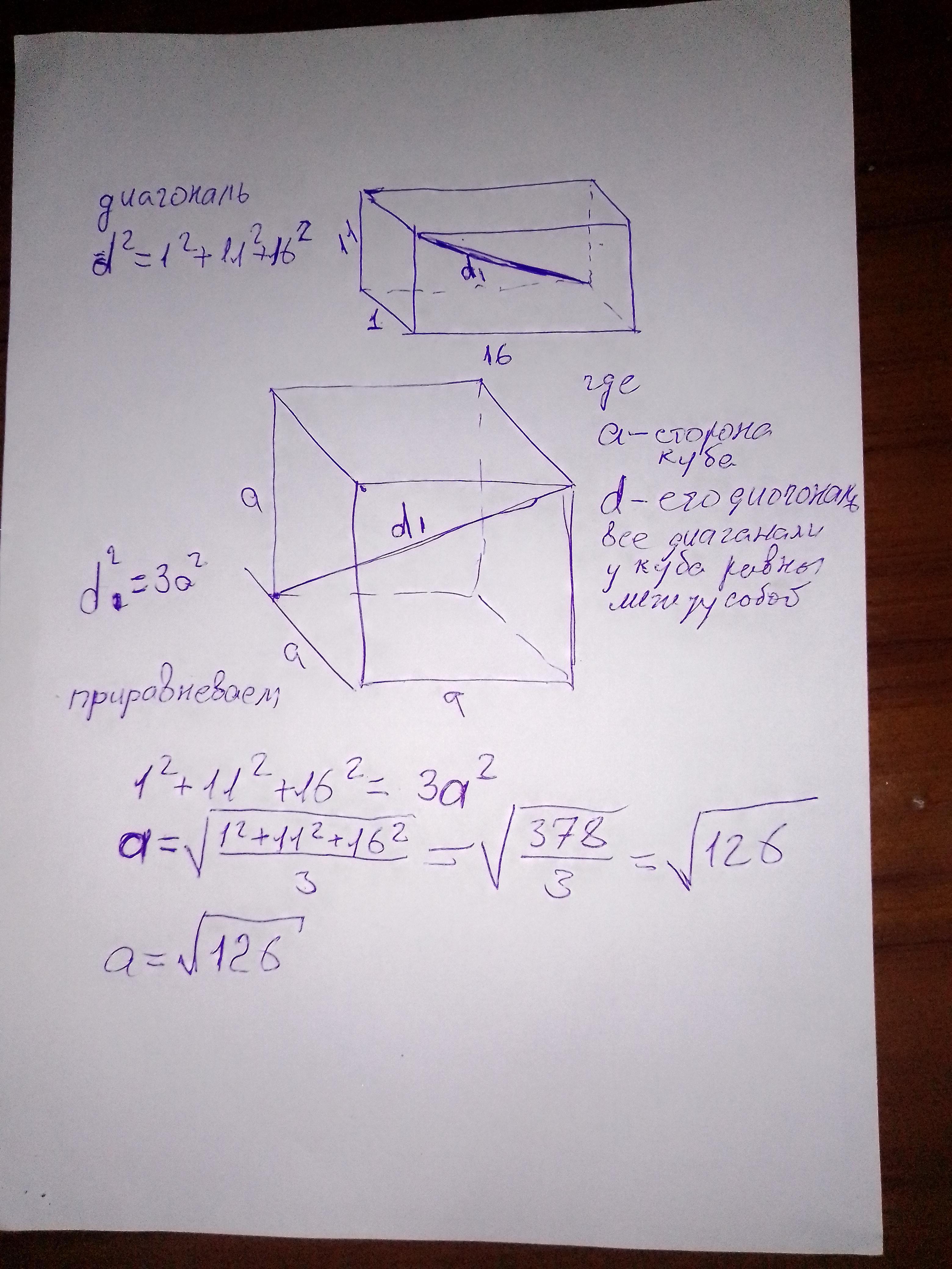 Найдите ребро куба, диагональ которого равна диагонали прямоугольного