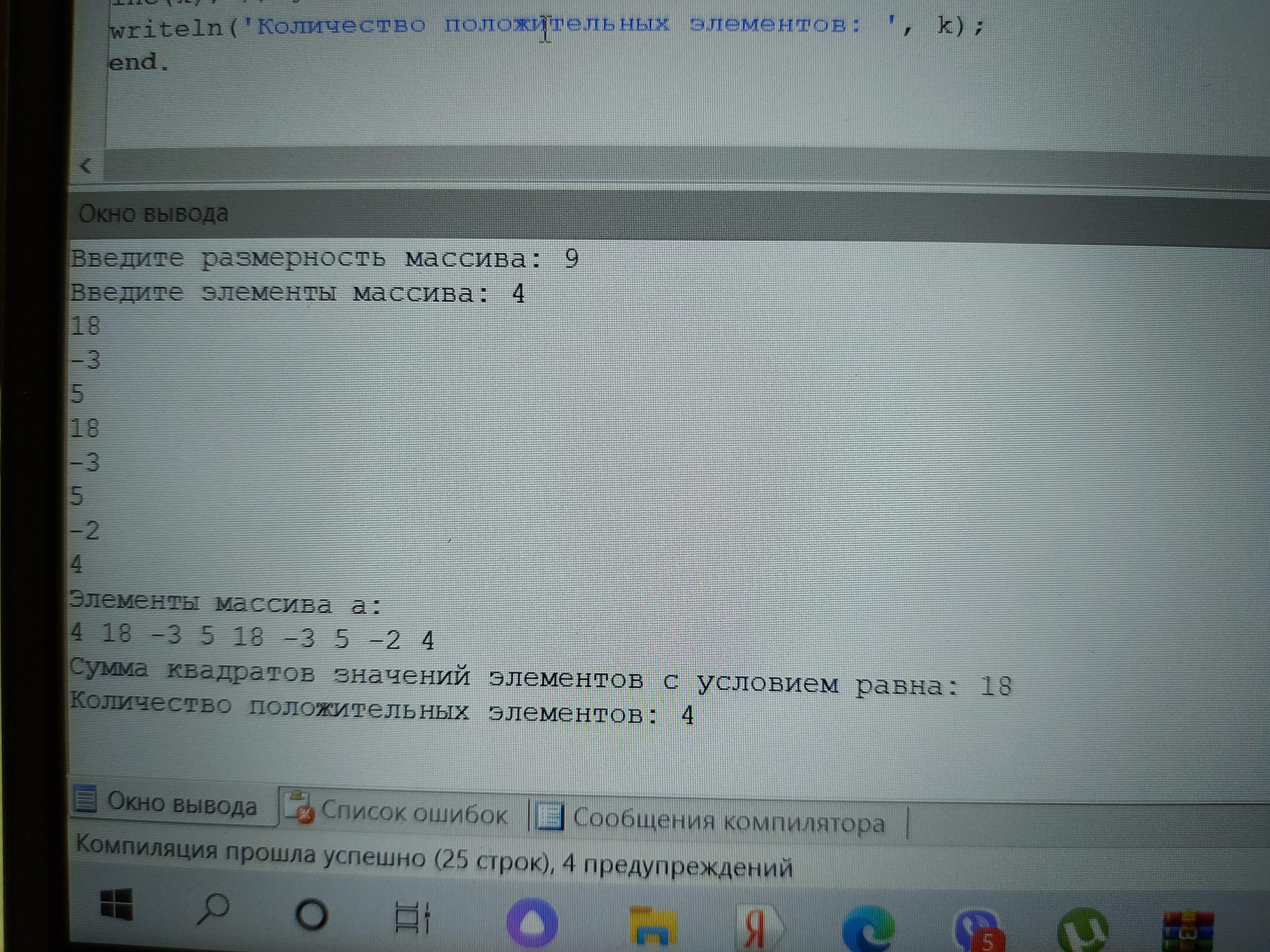 writeln('Сумма квадратов значений элементов с условием равна: ', sum);