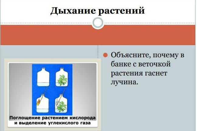Лучина гаснет, т.к. растение съедает(ну это образно-сьедает) кислород, а горение огня без кислорода невозможно. Ответ 100% правильный
