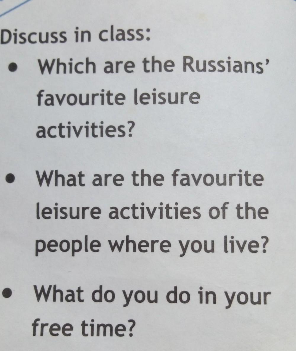 1. Какие любимые занятия у русских в свободное время?