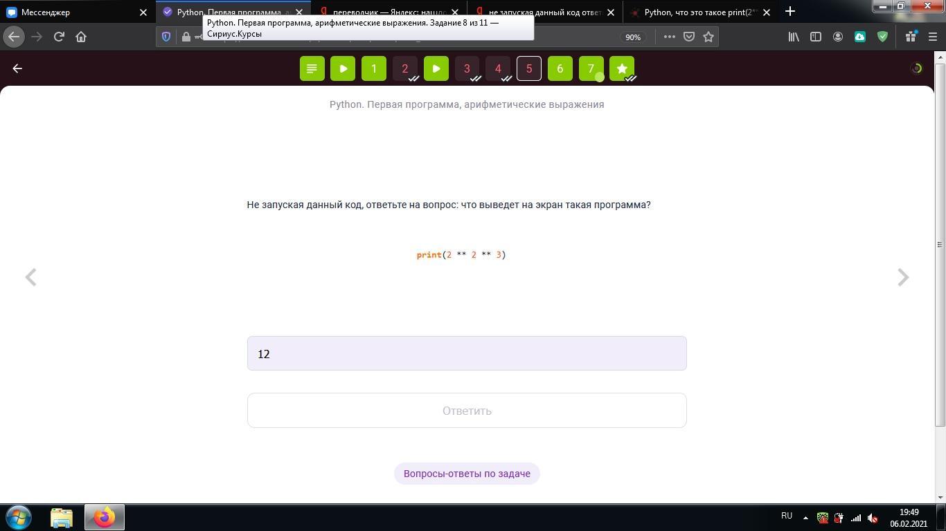 Такая программа выведет 256. Две звезды в питоне - оператор возведения в степень.