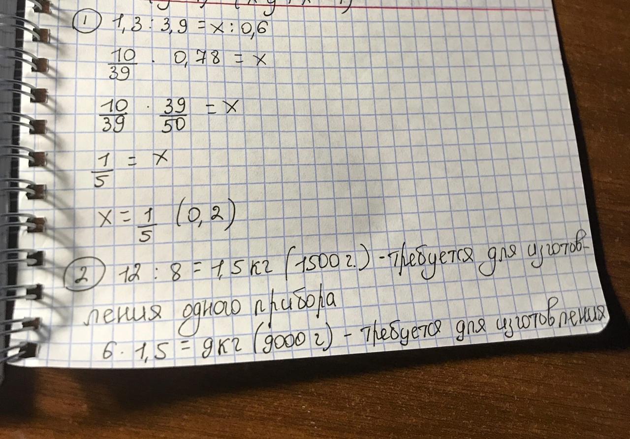 1. Решите уравнение 1,3: 3,9 = x: 0,6.
